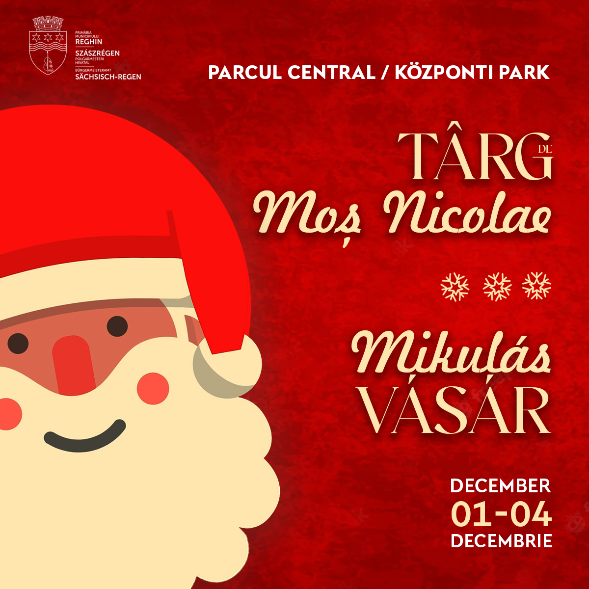 Producătorii locali îi aşteaptă pe reghineni, în perioada 1 – 4 decembrie, la Târgul de Moş Nicolae, care se va desfășura în Parcul Central din Reghin unde aveți ocazia să descoperiți diferite produse de sezon.