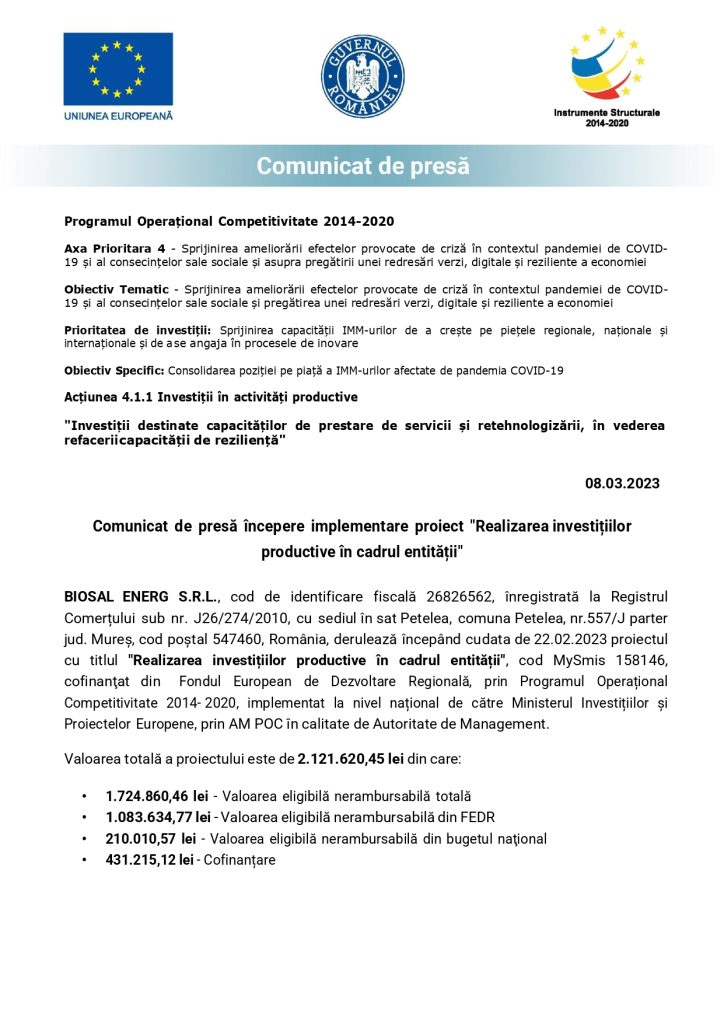 „Realizarea investițiilor productive în cadrul entității” 9 martie 2023 Codruta ROMANTA Lasa un comentariu Vizualizari: 492 Anul XIII, Nr. 186, Stiri
