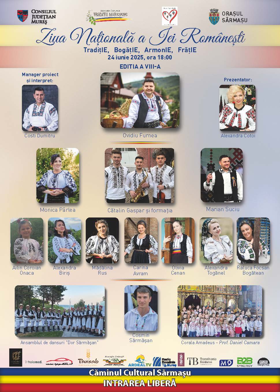 Pe scenă vor urca interpreți îndrăgiți ai județului Mureș, care vor aduce în fața publicului frumusețea cântecului românesc și respectul pentru tradiție:
