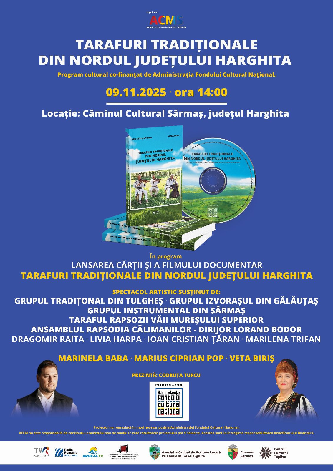 Asociația Culturală Mureșul Superior aduce în fața publicului cartea și filmul documentar „Tarafuri tradiționale din nordul județului Harghita”, un proiect realizat cu sprijinul Administrației Fondului Național Cultural (AFCN).