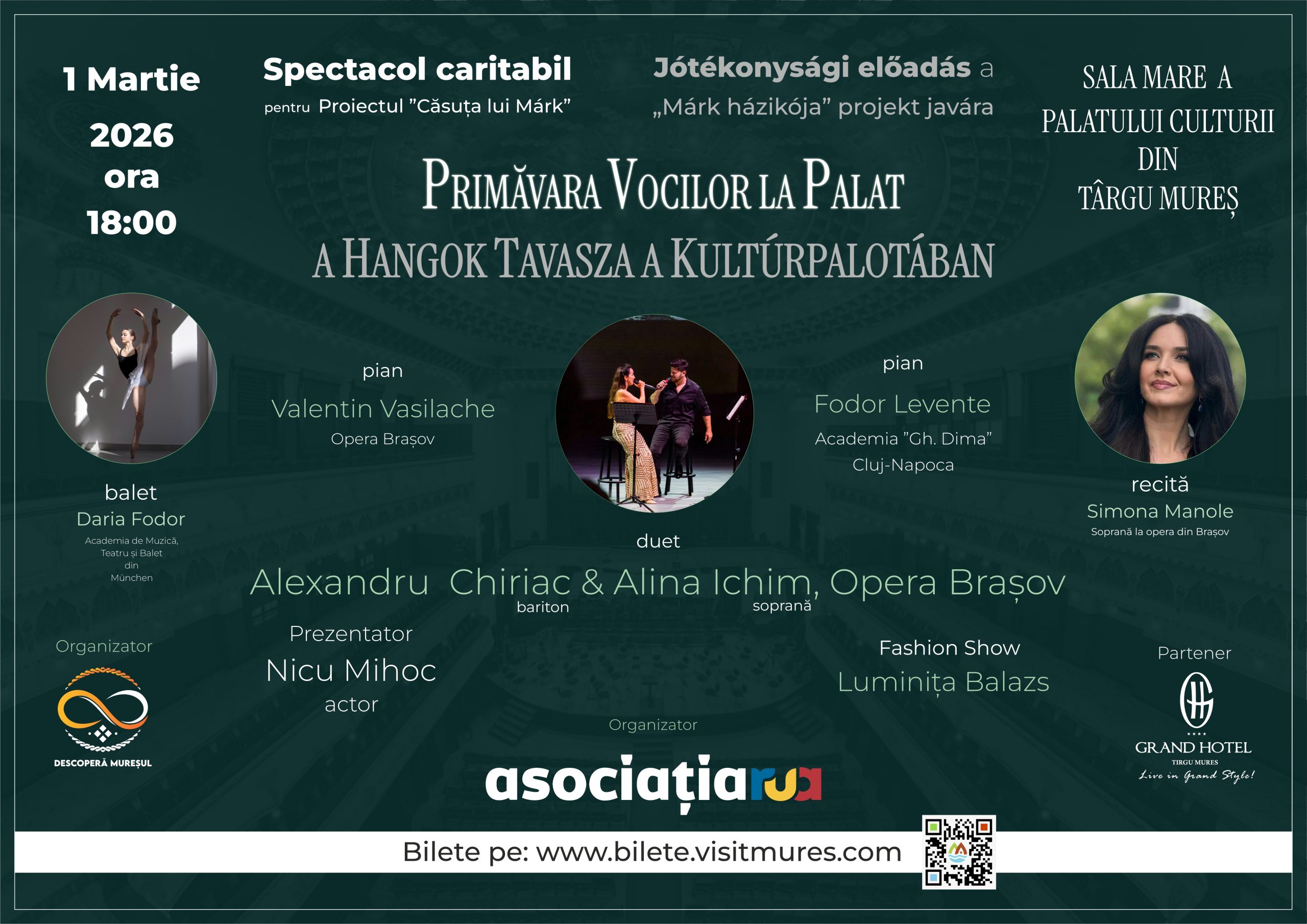 În acest context, în data de 1 martie 2026, ora 18:00, la Palatul Culturii din Târgu Mureș, va avea loc Spectacolul caritabil „Construim Căsuța lui Márk”, un eveniment dedicat binelui, empatiei și responsabilității sociale.